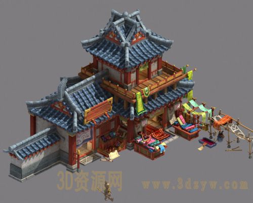 二层古代建筑服装店各