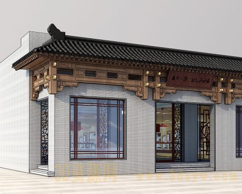 室外建筑墙中式墙3d